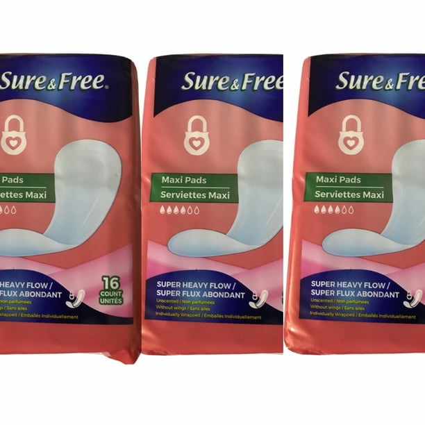 3 Packs Maxi Pads No Wings Heavy Flow Unscented 16 Ct Per Packs Walmart Com